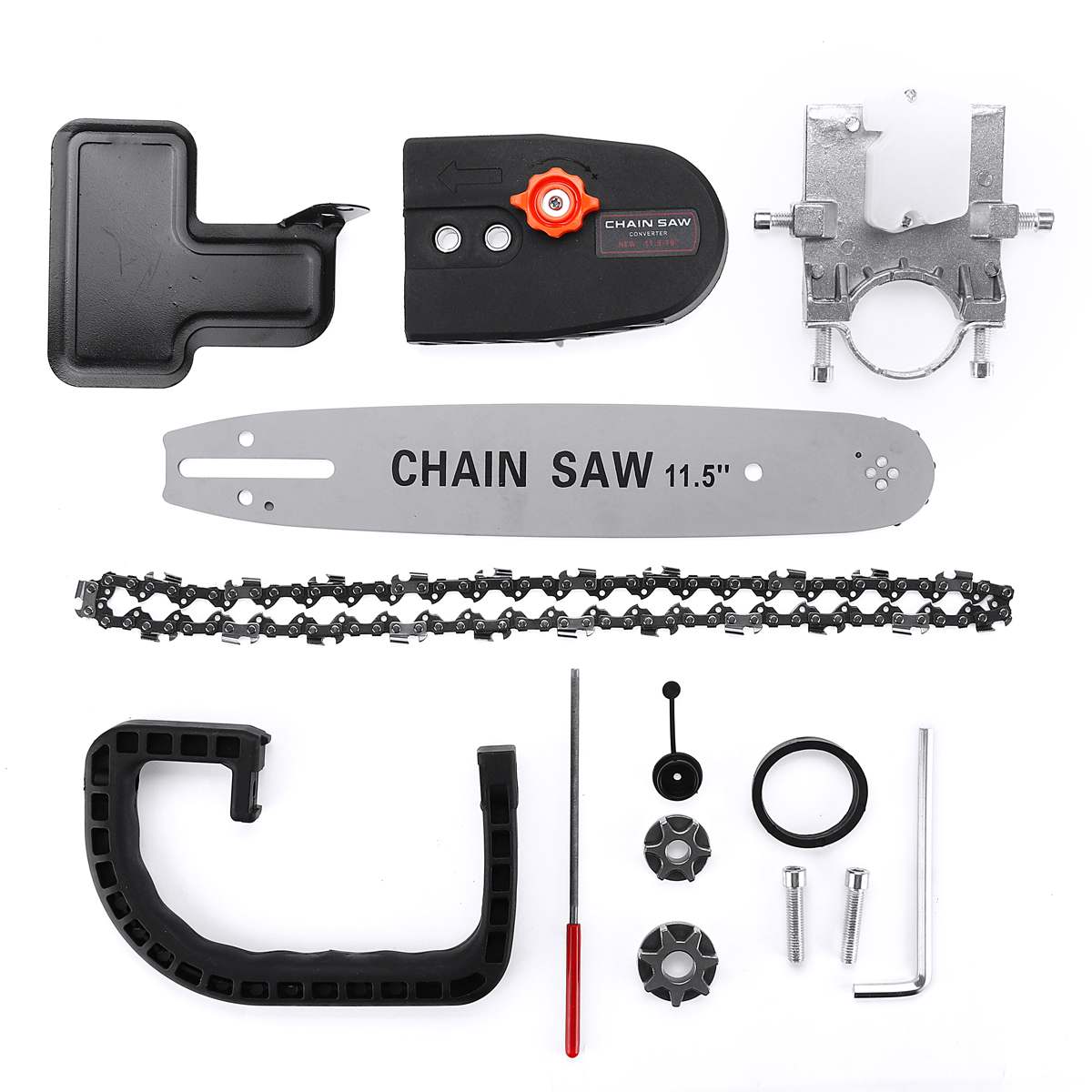 1. This Chain Saw Bracket Set fits 100/125 angle grider.