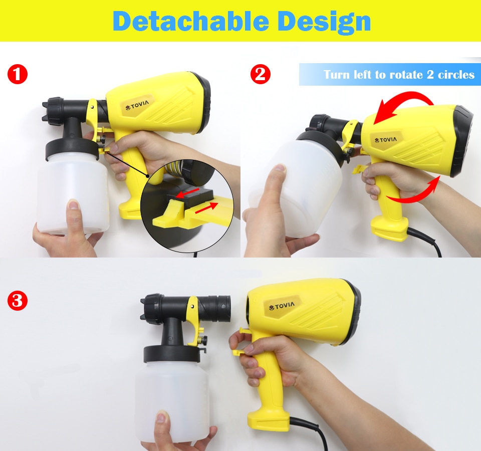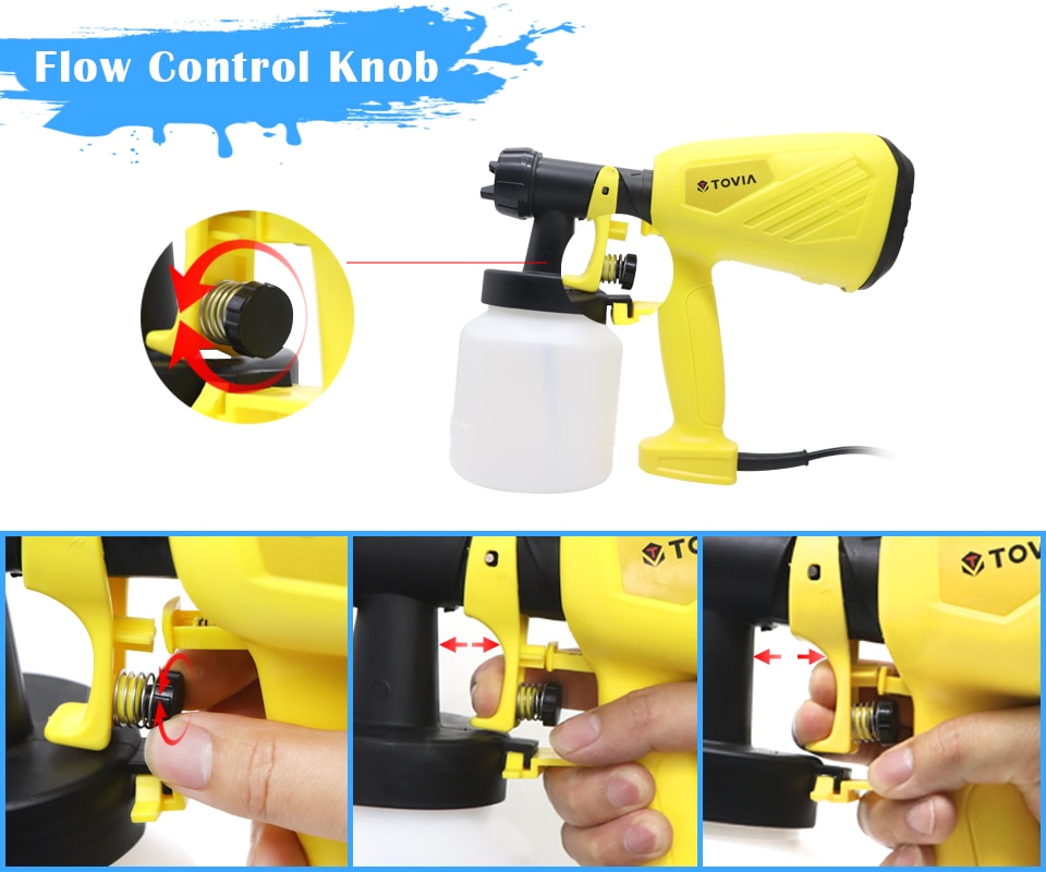 Regulate suitable paint output speed through flow control knob.Paint powerfully in large area and slowly in narrow space.